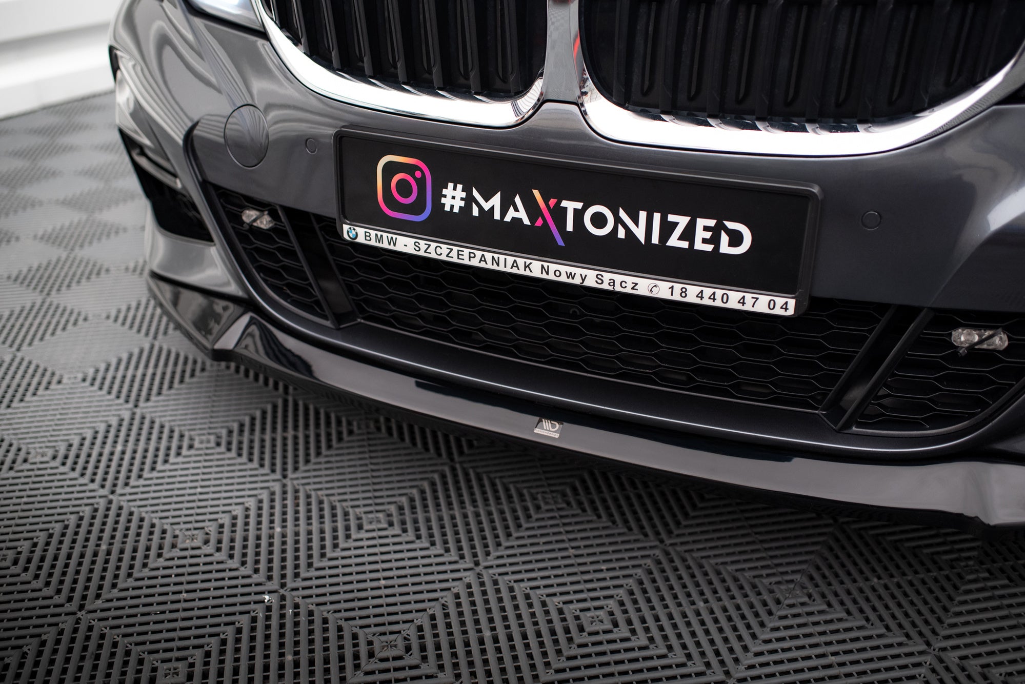 - La lèvre du spoiler avant est fabriquée en noir et prête à être installée.